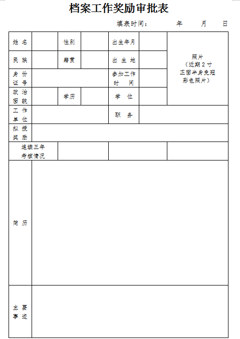 附件1:档案工作奖励审批表
