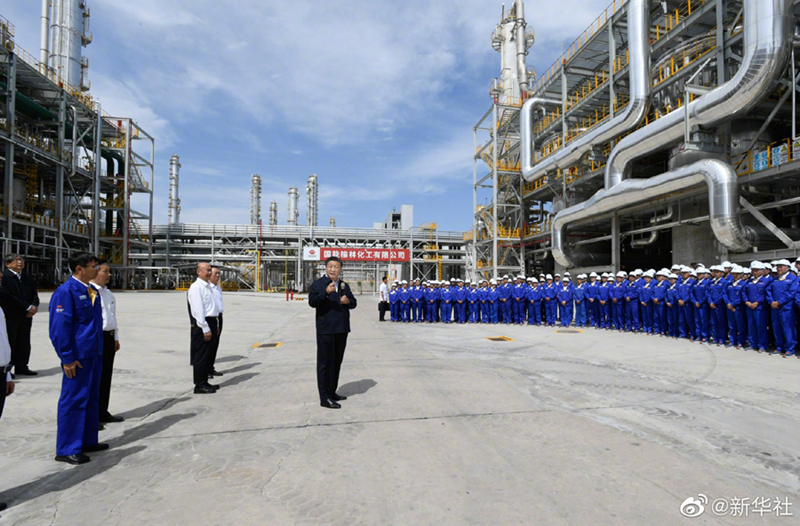 13日上午,习近平总书记来到国家能源集团榆林化工有限公司考察,走进中心控制室、来到项目现场,了解煤炭综合利用等情况。他强调,能源产业要继续发展,否则不足以支撑国家现代化。煤炭能源发展要转化升级,走绿色低碳发展的道路。这样既不会超出资源、能源、环境的极限,又有利于实现碳达峰、碳中和目标,适应建设人类命运共同体的要求,把我们的地球家园呵护好。(新华社微博)