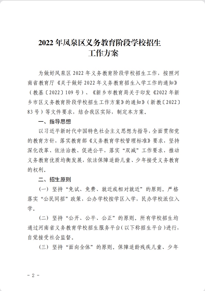 2022年凤泉区义务教育阶段学校招生工作方案