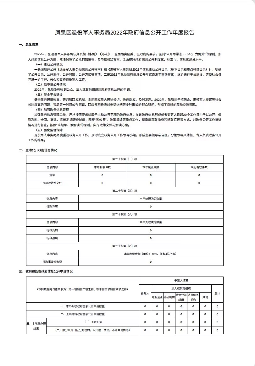 凤泉区退役军人事务局2022年政府信息公开工作年度报告