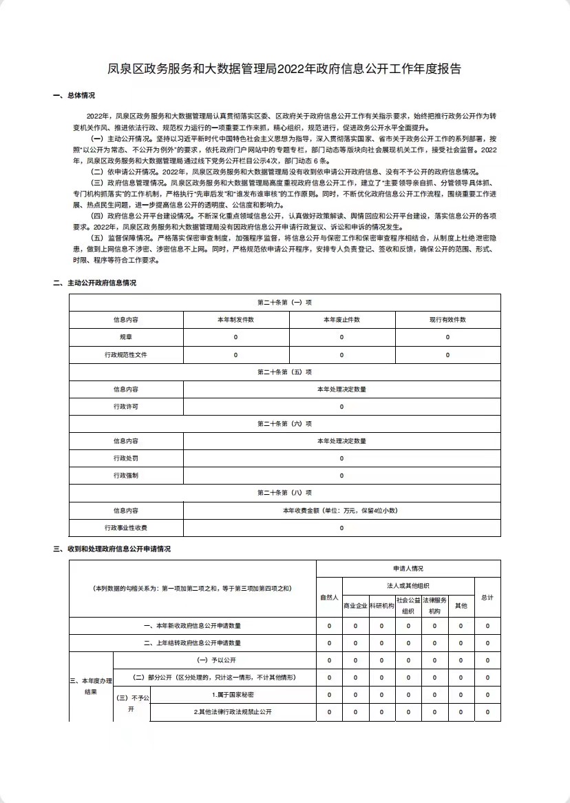 凤泉区政务服务和大数据管理局2022年政府信息公开工作年度报告