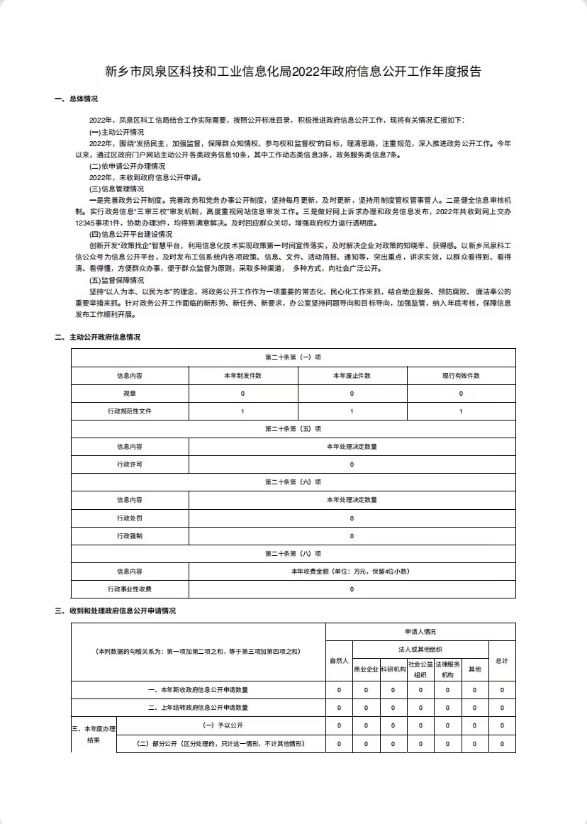 新乡市凤泉区科技和工业信息化局2022年政府信息公开工作年度报告