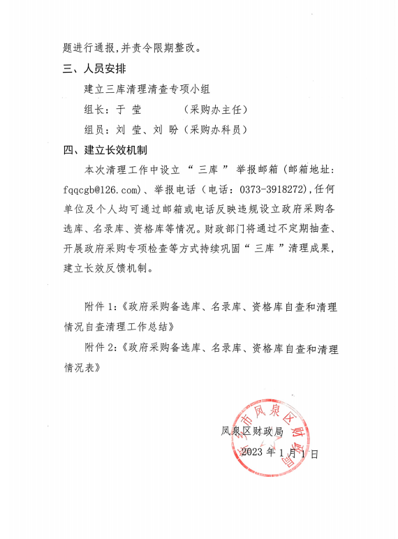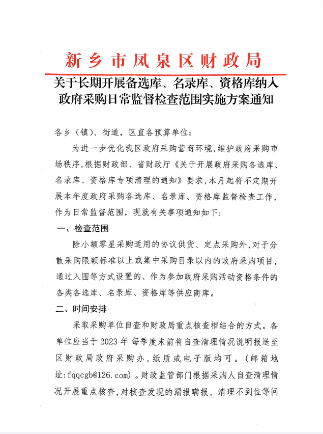 凤泉区财政局关于长期开展备选库、名录库、资格库纳入政府采购日常监督检查范围实施方案通知