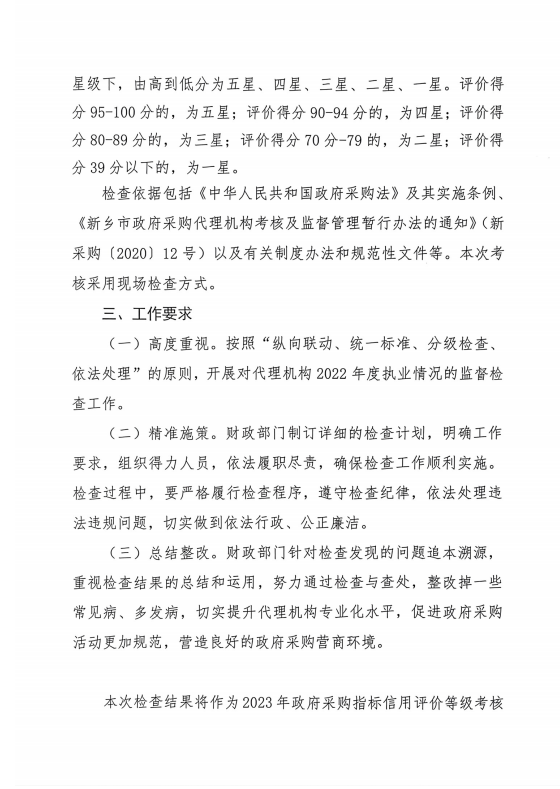 凤泉区财政局关于2022年度政府采购代理机构现场考核及监督检查工作的工作通报