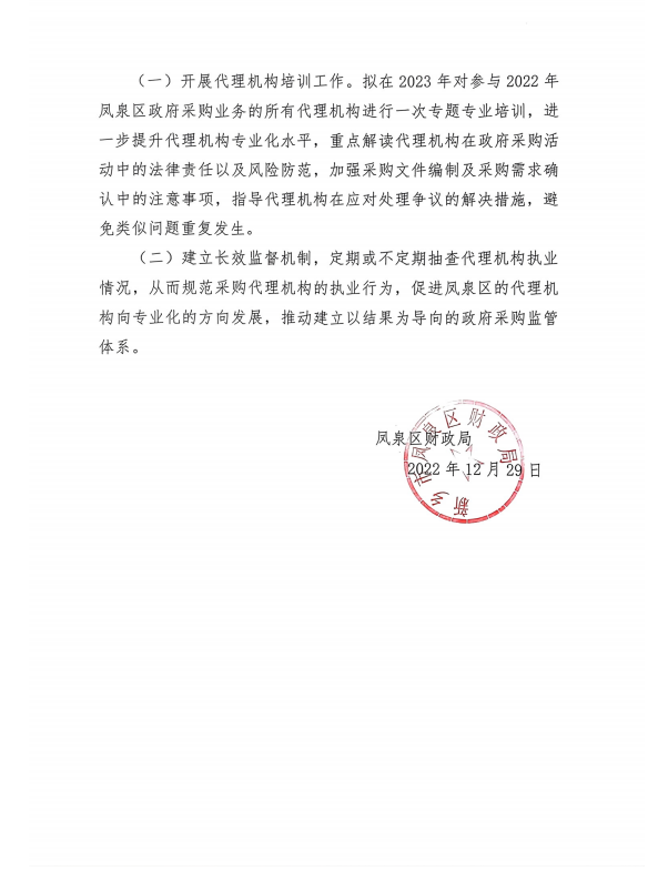 凤泉区财政局关于开展2022年度政府采购代理机构监督检查工作的通知