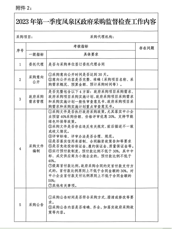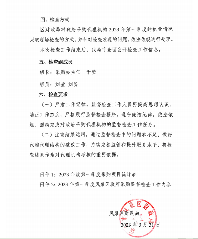 凤泉区财政局关于开展2023年第一季度政府采购监督检查工作的通知