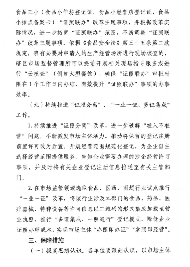 凤泉区市场监督管理局关于印发《关于深化市场监管领域证照联办全覆盖改革的实施意见》的通知