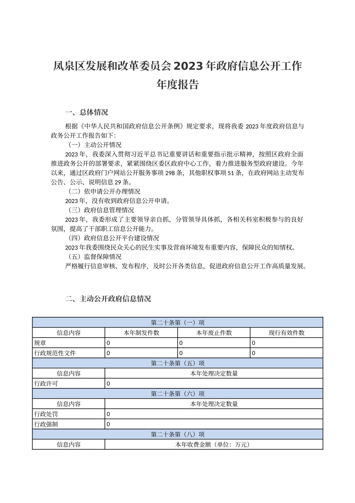 凤泉区发展和改革委员会 2023 年政府信息公开工作年度报告