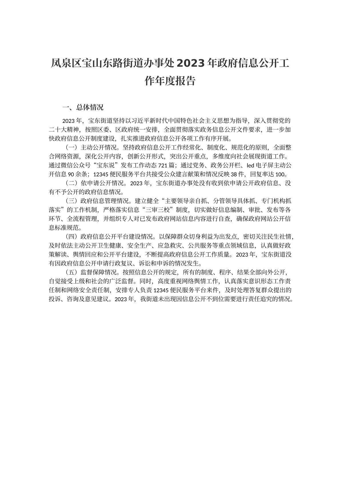 凤泉区宝山东路街道办事处2023年政府信息公开工作年度报告