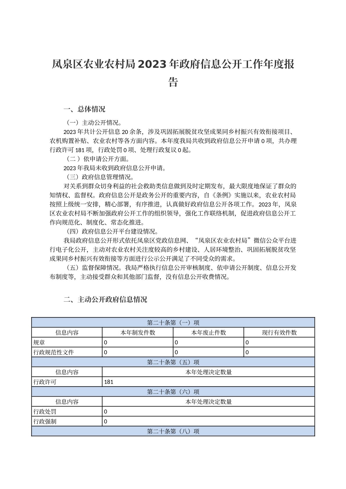 凤泉区农业农村局2023年政府信息公开工作年度报告
