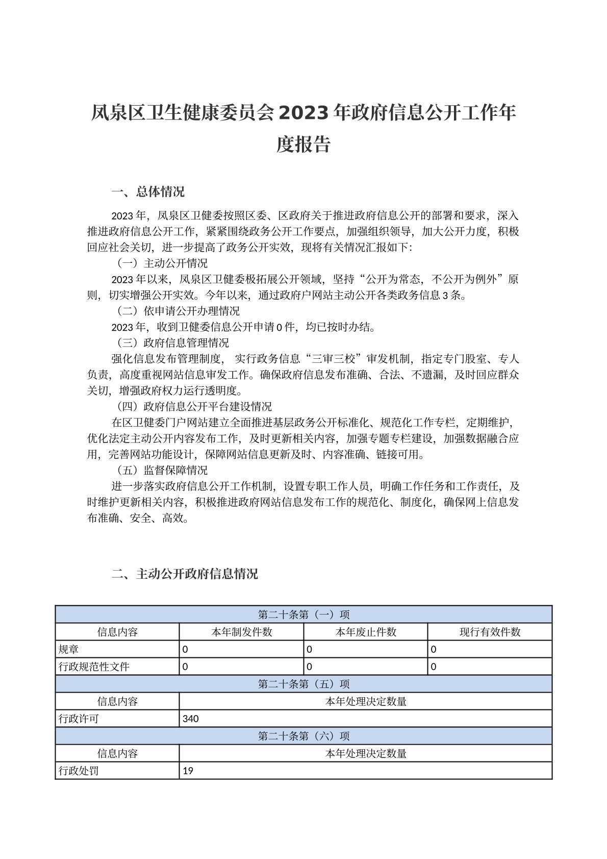 凤泉区卫生健康委员会2023年政府信息公开工作年度报告
