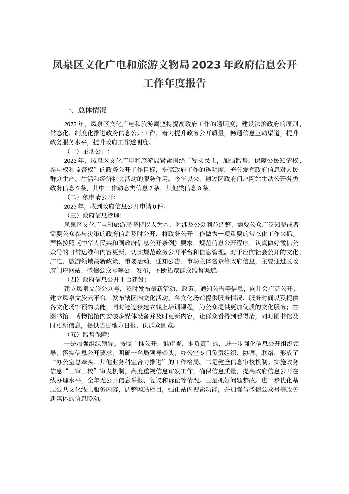 凤泉区文化广电和旅游文物局2023年政府信息公开工作年度报告