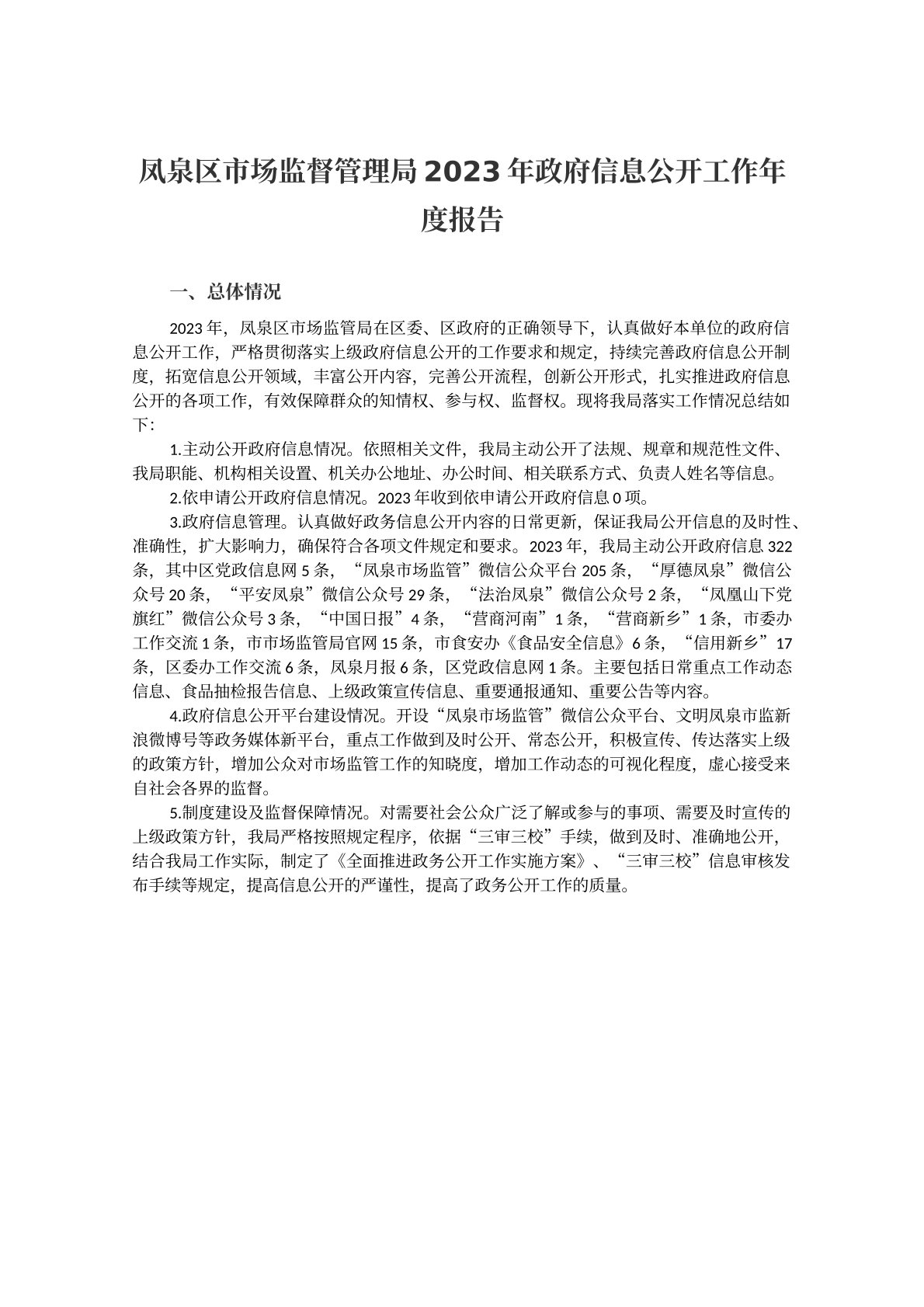 凤泉区市场监督管理局2023年政府信息公开工作年度报告