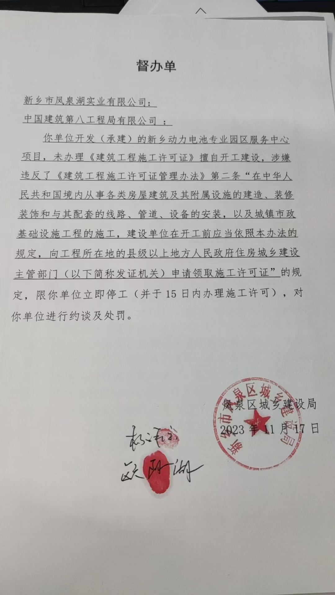 新乡动力电池专业园区服务中心项目督办单