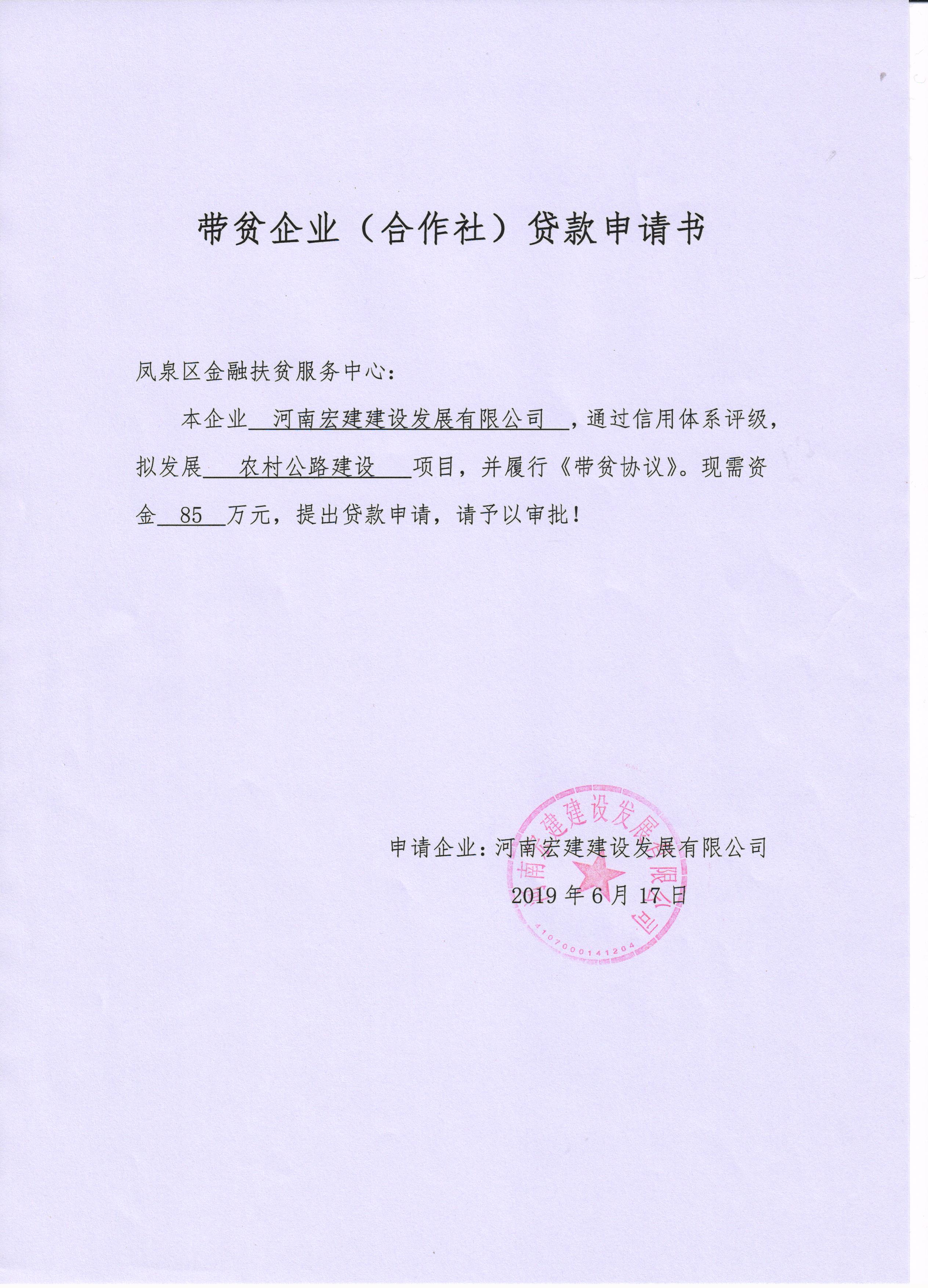 附:河南宏建建设发展有限公司扶贫贷款相关资料