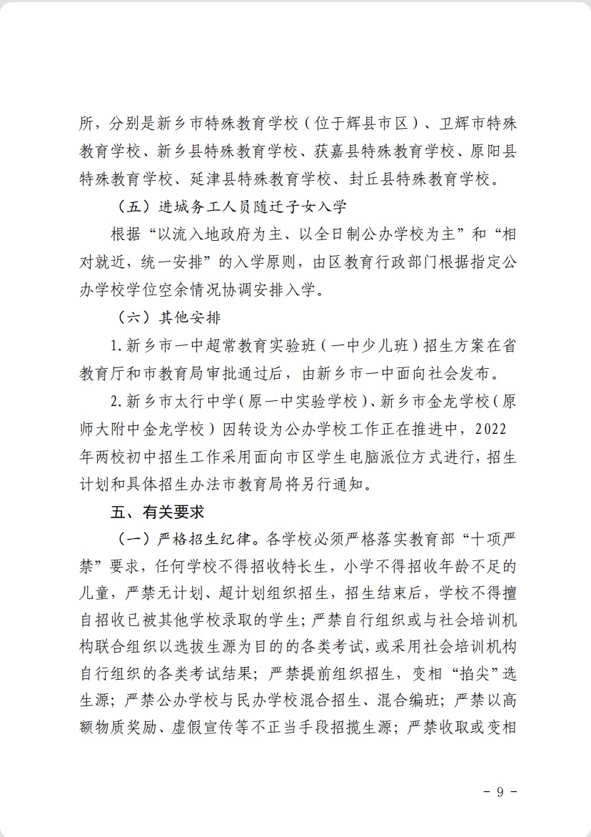 2022年凤泉区义务教育阶段学校招生工作方案