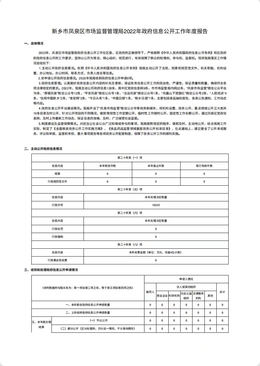 新乡市凤泉区市场监督管理局2022年政府信息公开工作年度报告