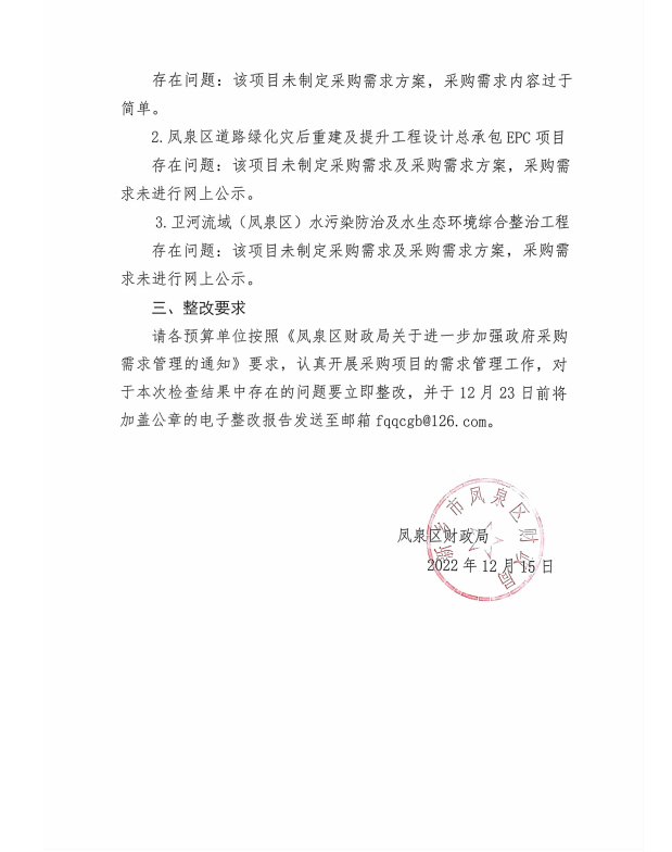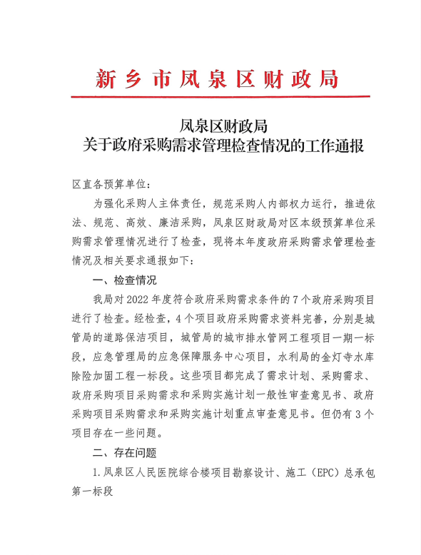 凤泉区财政局关于2022年政府采购需求管理检查情况的工作通报
