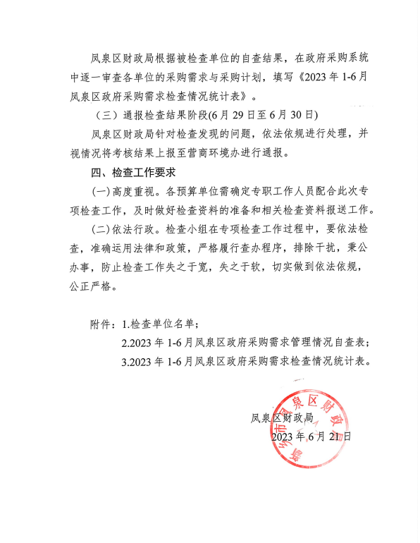 凤泉区财政局关于开展2023年第二季度政府采购监督检查工作的通知