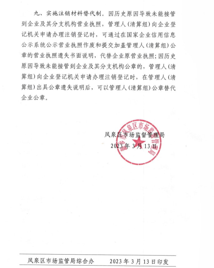 凤泉区市场监督管理局《关于进一步推动企业注销便利化》的通知