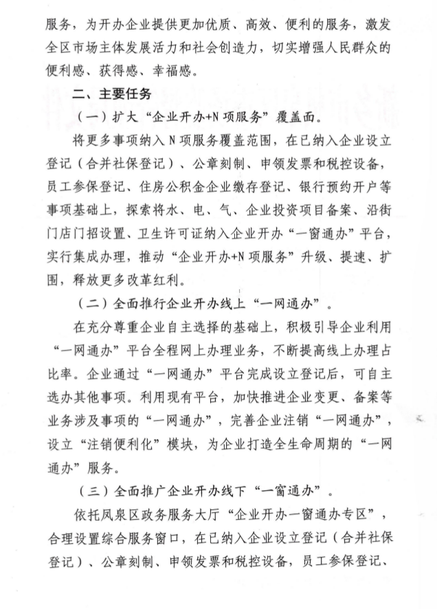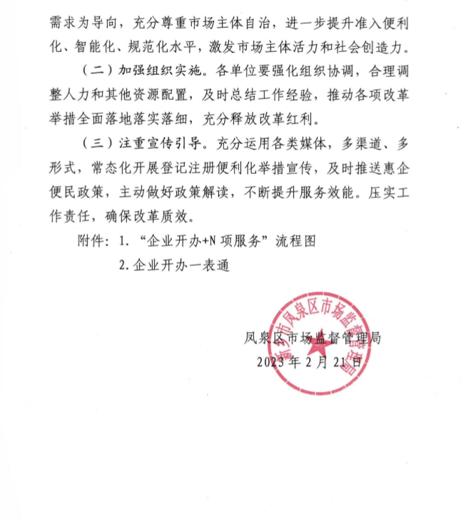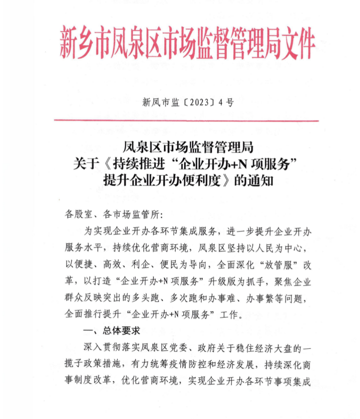 凤泉区市场监督管理局关于《持续推进“企业开办+N项服务”提升企业开办便利度》的通知