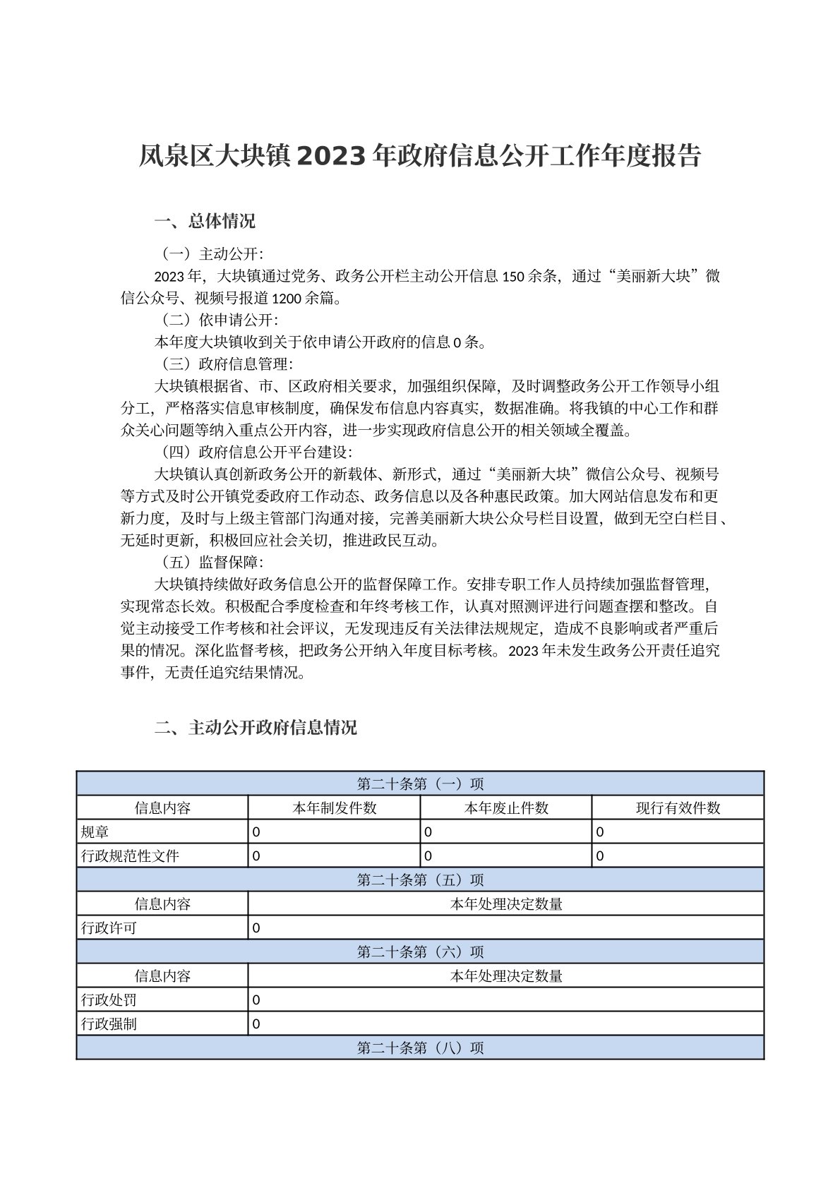 凤泉区大块镇2023年政府信息公开工作年度报告