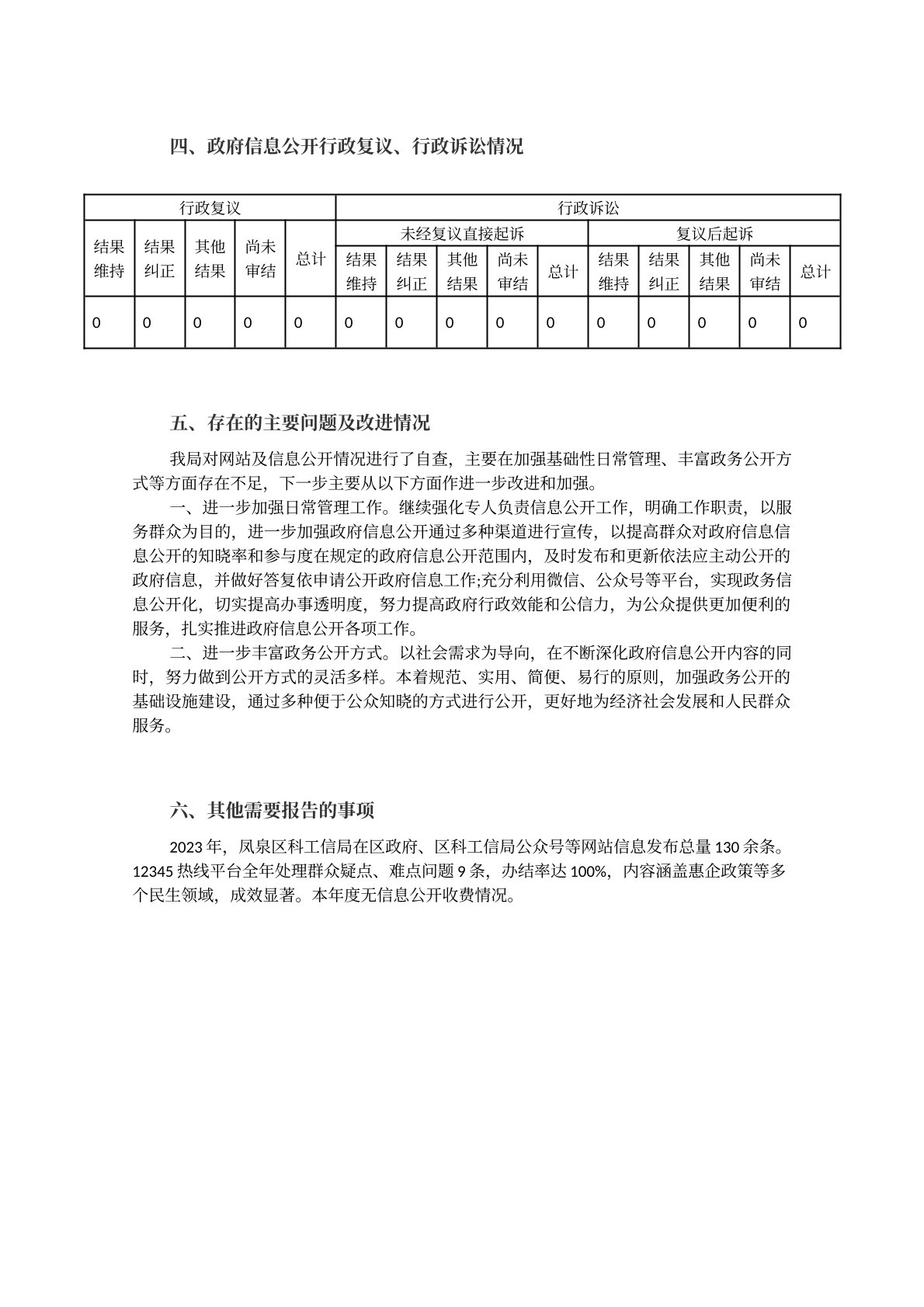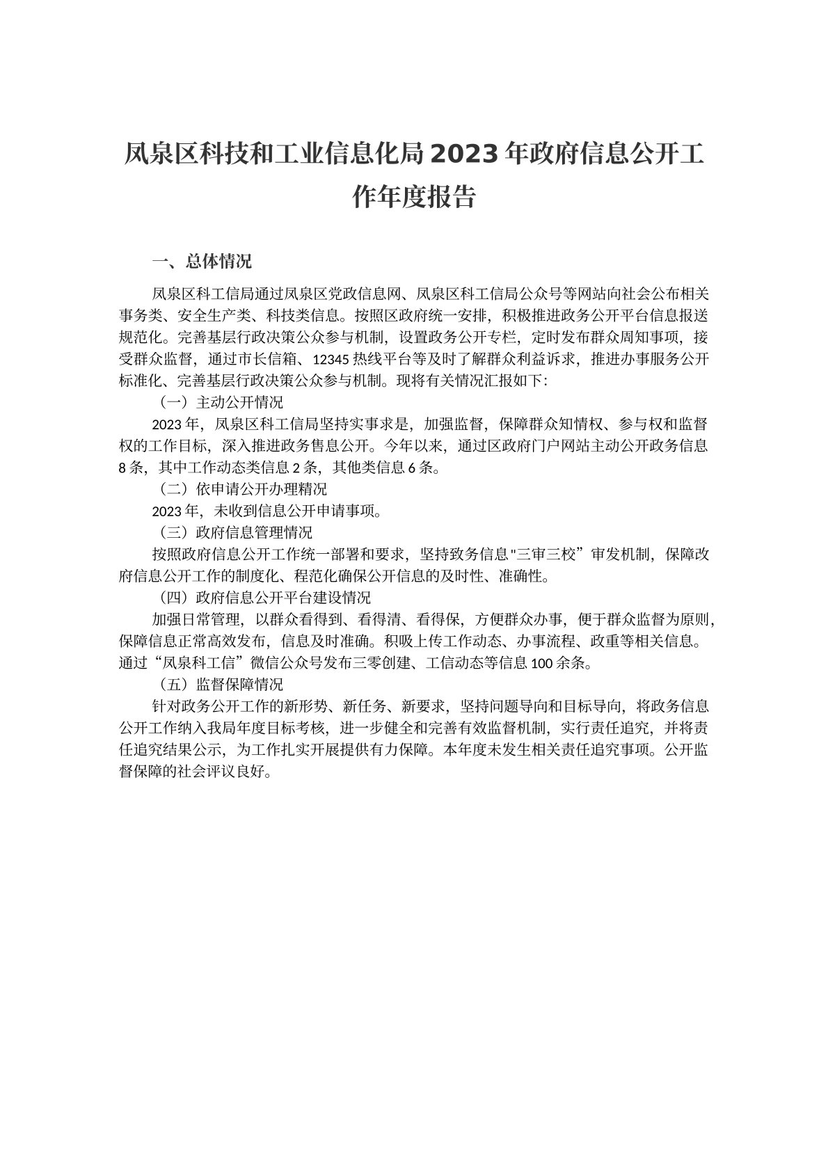 凤泉区科技和工业信息化局2023年政府信息公开工作年度报告