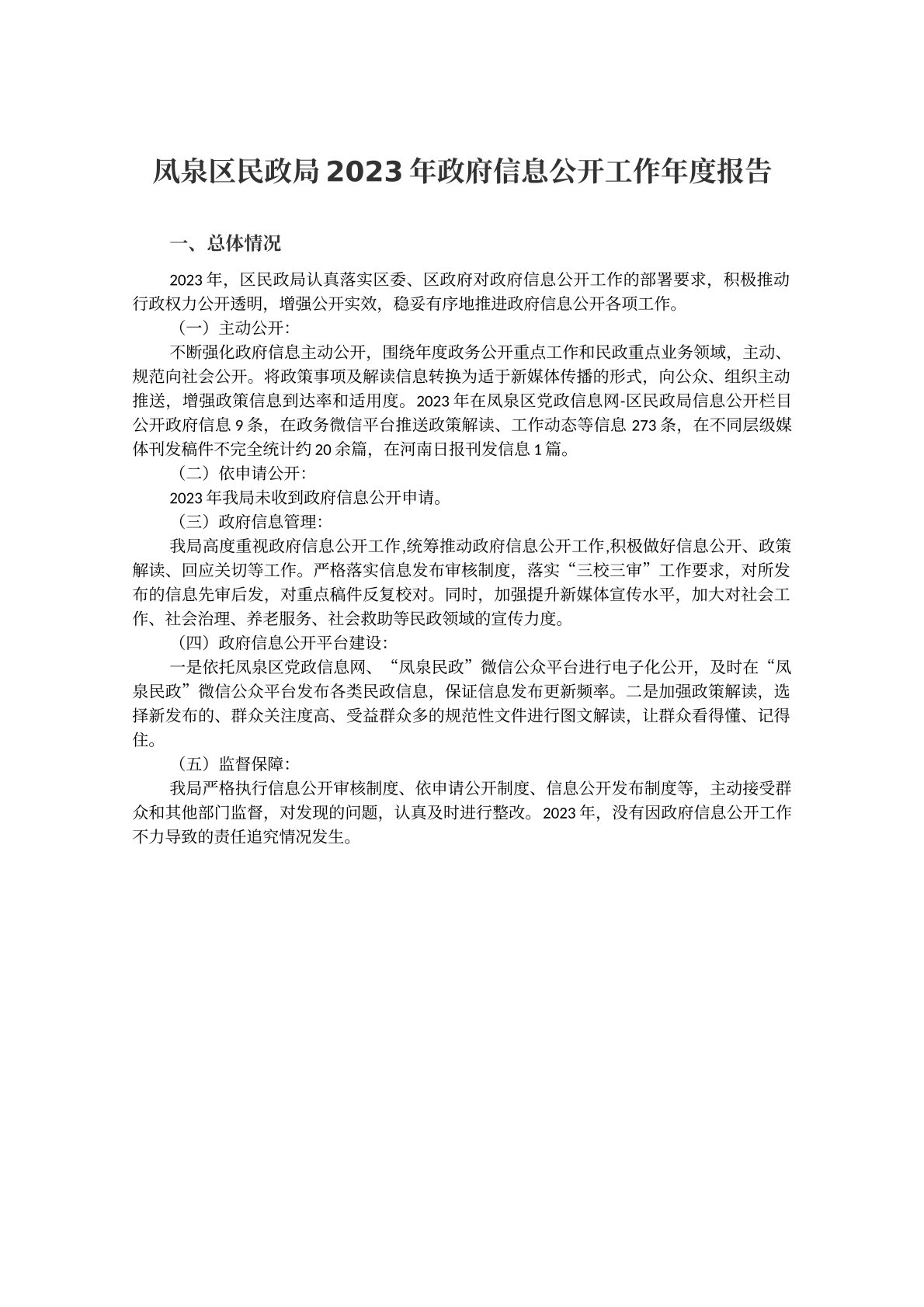 凤泉区城乡建设局2023年政府信息公开工作年度报告