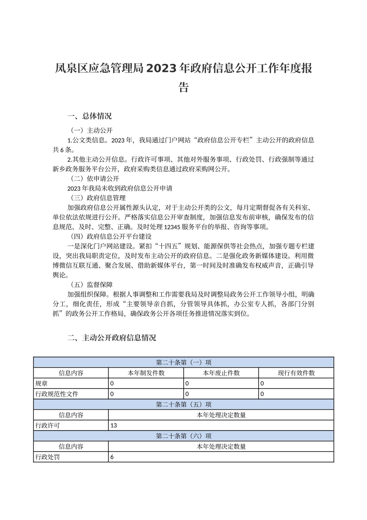 凤泉区应急管理局2023年政府信息公开工作年度报告