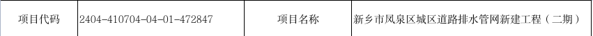新乡市凤泉区城区排水管网新建工程(二期)项目基本信息及办理结果信息