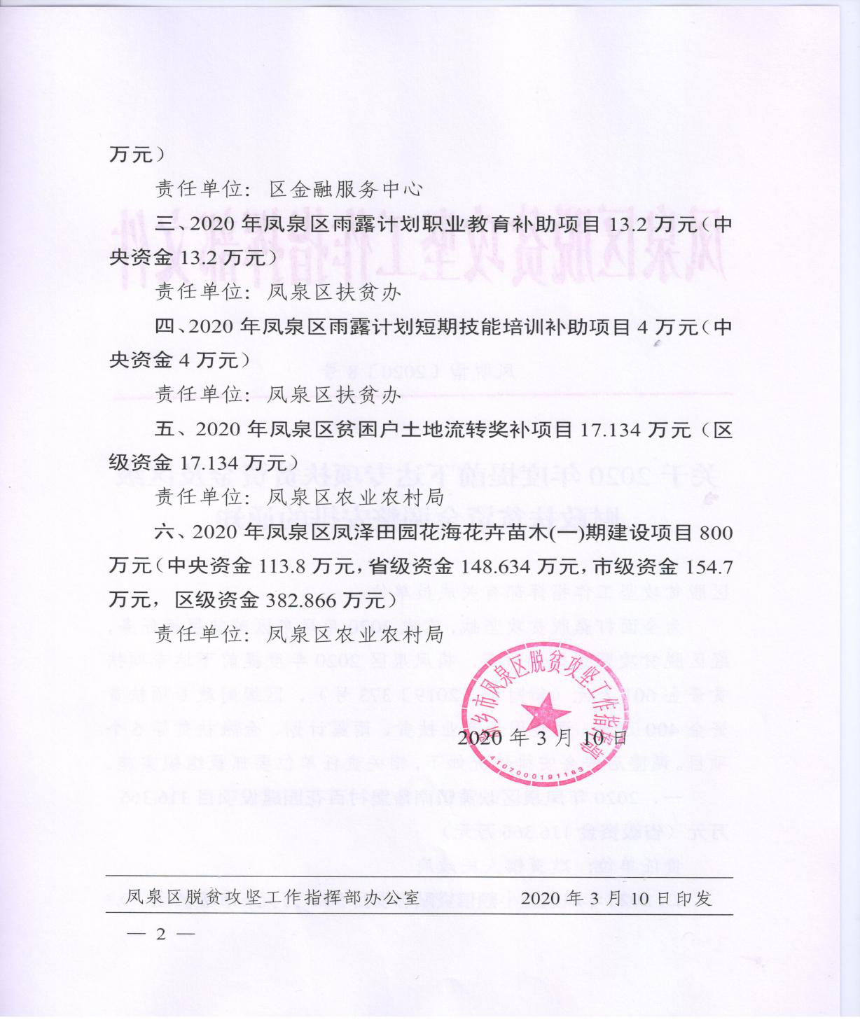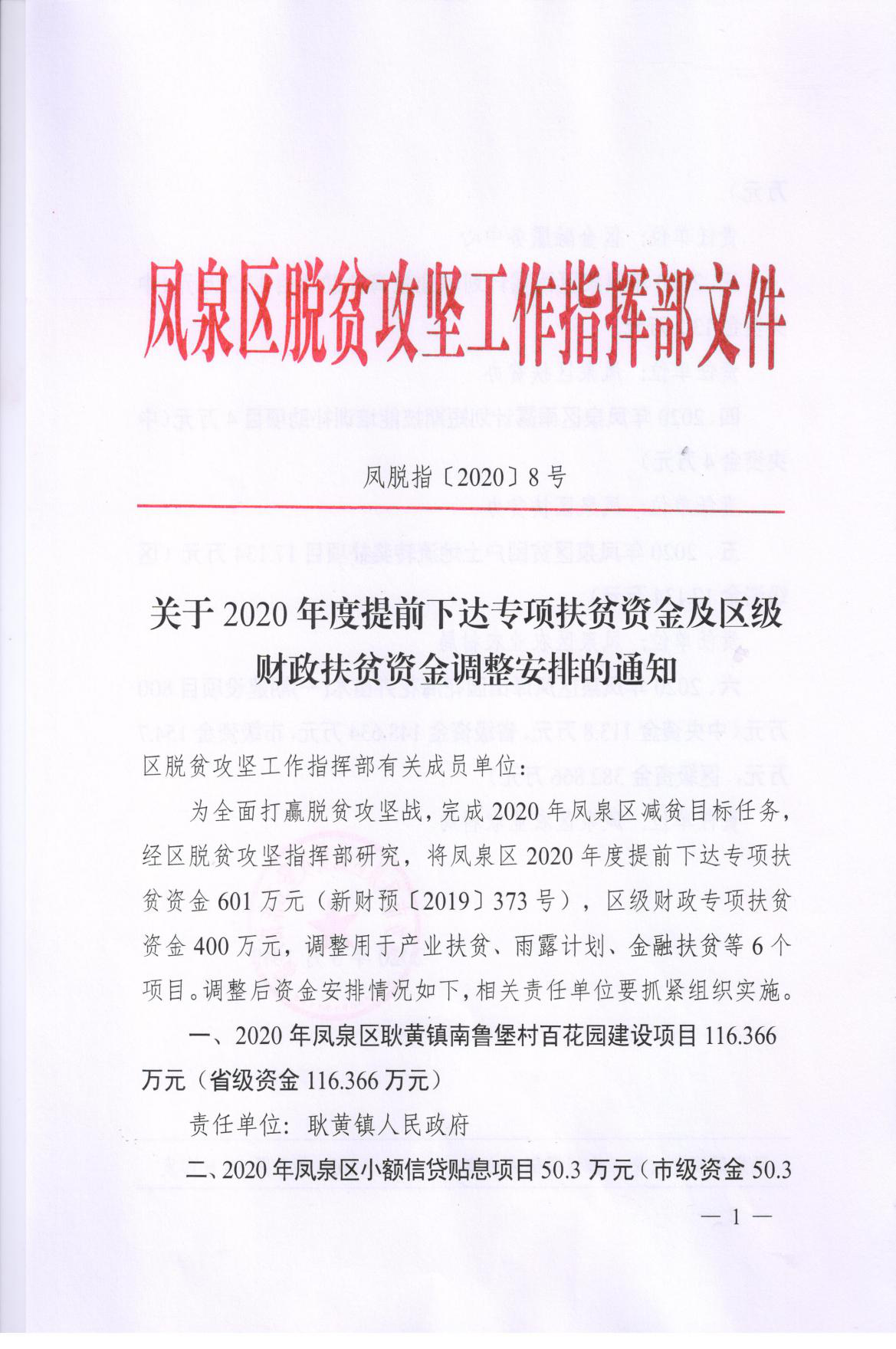 凤泉区2020年第一批专项扶贫资金分配表 | ||||||